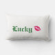 This fun Irish pillow is accented with a 4 leaf clover and "Feeling" written in green on the front. The back is further accented with "Lucky" written in green and a cute kiss, making it a sweet gift for St. Patrick's Day. If purchasing 2 pillows they can be arranged on a bed side by side saying "Feeling Lucky".