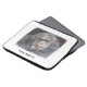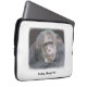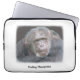 This laptop case features a contemplative chimpanzee photograph on its cover.