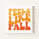 This bold and vibrant fall-themed artwork features the phrase "Feels Like Fall" prominently displayed in a retro-inspired, chunky font. The text is arranged in a dynamic, playful layout that draws the eye and adds a sense of movement to the design. The warm gradient colour palette transitions from golden yellow to deep orange, perfectly capturing the rich hues of autumn leaves. The simplicity of the design, paired with its nostalgic typography and striking colours, makes it a perfect choice for seasonal decor, apparel, or promotional materials celebrating the arrival of fall. This artwork is ideal for evoking the cosy and nostalgic feelings associated with the autumn season.