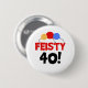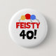 Three primary colours balloons and black and text that reads "Feisty 40" on humourous 40th birthday cards, T-shirts, mugs, and more.