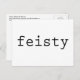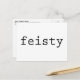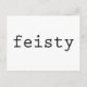 Having or showing exuberance and strong determination, that's feisty. Is that you or someone you know? Show it off with the word "feisty" written in black in a cool font.