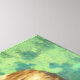 This design features a painting by the Scottish artist George Henry (1858–1943), who was one of the most prominent members of the Glasgow School of art. It is a portrait of a beautiful young woman named Felicity. She is seated at a table and she is wearing a turquoise-blue dress. Her elbows are resting on the table and she is holding her hands together beside her face. Felicity is starting intently at the viewer. She is clearly an elegant woman. Her chestnut-brown hair is fashionably styled and she is wearing a scarf over her dress, that is a slightly darker shade of turquoise than the dress itself. There is greenery in the background, suggesting that she is sitting outside in a garden. The original artwork was painted by George Henry in 1916.