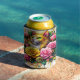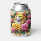 Feline Amidst a Vibrant Floral Bloom Can Cooler