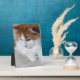 Photograph of Turkish Van Cat Resting on Pillow Looking Downward Left