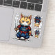 This captivating pixel art image features an anthropomorphic cat dressed as a samurai, complete with traditional blue and red armour. The cat, with orange fur and black stripes, stands ready for battle, wielding a katana sword in its right paw with another sheathed at its side. Its serious and determined expression enhances the warrior theme, blending the cuteness of a cat with the historical and powerful elements of a samurai. This unique and engaging character design is perfect for fans of both cats and Japanese culture.