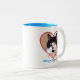 Add a pop of colour to your morning coffee with this two-tone mug featuring Felix, one of our special needs cats.