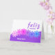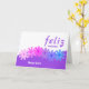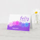 A personalised card to wish a spanish friend "Feliz cumpleaños" ("Happy Birthday"). Add their name on the front, and customise the message inside. Stylised flowers in pinks, purples and blues decorate the front of this card which has a simple contemporary design, and there is a purple flower inside as well. The default greeting inside is "Que este cumpleaños sea el mejor de todos" (translation "May this birthday be the best ever"), or you can change this.