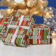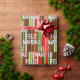 Modern, stylish Christmas themed pattern design that mixes an uneven stripes background in the classic holidays colours with "Merry Christmas" in Spanish. Unique wrapping design for original gifts.