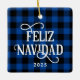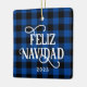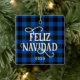 Feliz Navidad Blue Buffalo Plaid Family Photo Ceramic Ornament