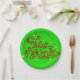 Feliz Navidad lettering in red with stars. This colorful plates are ideal for Mexican, Spanish or Latino american Christmas dinners. Custom background color