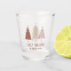 Seasonal festive shot glass design features an elegant display of snowy Christmas trees in red, gold & pink on a transparent background. Below the trees, section "Feliz Navidad" is featured in elegant classic typography. Add a custom name or line of custom text in matching red script with the simple-to-use template. Please message or email beachpausedesigns@gmail.com for further customisations.