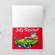 Holiday greeting card in Spanish with Santa Claus in a vintage green Cadillac Low Rider! Inside the greeting- Feliz Navidad!