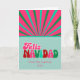 Get excited to celebrate Christmas with this fun, colourful design. Featuring the text "Feliz Navidad" in ultra bright tones of pink, red, green and aqua in a retro bubble style of typography and easy to customise with your family name and year (or any custom text of your choice). This modern folded greeting card brings new meaning to the words merry and bright!