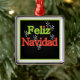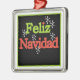 Holiday keepsake ornament reads "Feliz Navidad" in green and red text.