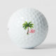 This holiday golf ball is shown in white with a holiday palm tree print. Text says Feliz Navidad.