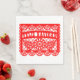 These Christmas napkins feature a red papel picado Mexican banner with the phrase Feliz Navidad on the front in bright white.