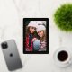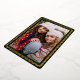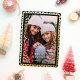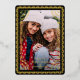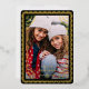 This modern holiday photo card features one vertical photo, a chic black background, and a papel picado inspired frame in raised gold foil. The greeting and your personalised text are in raised foil also. This design is festive and elegant! The background colour is fully customisable. The raised foil on this card really shines and adds that extra special touch to your holiday cards!