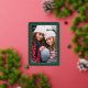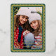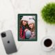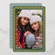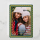 This modern holiday photo card features one vertical photo, a festive dark green background, and a papel picado inspired frame in raised gold foil. The greeting and your personalised text are in raised foil also. This design is festive and elegant! The background colour is fully customisable. The raised foil on this card really shines and adds that extra special touch to your holiday cards!