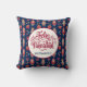 This fabulous Christmas folk art 16" x 16" blue pillow with a pattern of santas, reindeer, presents and stars that says Merry Christmas in Spanish "Feliz Navidad" and has your last name would look awesome on your couch, bed or chairs! It's so festive and will go with any Christmas decor - it's rustic yet retro and modern yet traditional! It'll look fantastic and add that little extra Christmas touch to your home!
