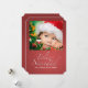 A contemporary Christmas card with the sentiments written in Spanish "Feliz Navidad" against a gradient red background. Want to save money? Print this card on the basic, square corner paper.