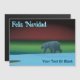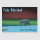 A polar bear roams the ice during the long polar night; the Northern Lights in red and green glow in the distance. Spanish text reading "Feliz Navidad" appears in glowing blue and white. Add your own additional text.