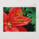 Feliz Navidad - Red Poinsettia and Fir Bow Holiday Postcard