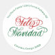Celebrate the season with this Feliz Navidad round return address sticker, featuring elegant hand-lettered calligraphy in festive red and green. Perfect for holiday cards, gift packaging, or envelopes.