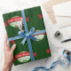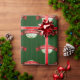 Here we have a lovely wrapping paper that features a red ribbon and a decorated oval that says "Feliz Navidad y Prospero Ano Nuevo"on a light green and dark green striped background. (Translation is Merry Christmas and Happy New Year). This paper is available in multiple sizes and is a match to other wrapping papers, tissue papers, gift bags and a greeting card. This is sure to make a perfect addition to your gifts this holiday season.