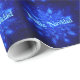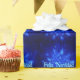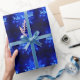 A swarm of blue fractal snowflakes. Text reading "Feliz Navidad" appears in glowing blue and white.