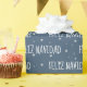 Spanish Merry Christmas text with snowflake and star design on a blue background.