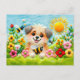 Felt Dog in a Blooming Garden with Bees Postcard