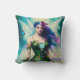 Female Blue Hair Fairy Portrait in Green Dress Cushion