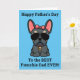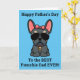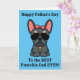 Frenchies, show your Dad some love this Father’s day with a personalized card just from you. Message on the front of the card reads “Happy Father’s Day to the Best Frenchie Dad Ever!" Inside message reads “I love you more than walkies, Happy Father’s Day.” The design features a cute cartoon style illustration of a female blue and tan colored french bulldog wearing a pink bow and collar. Font and background color and be changed by selecting “Click to customize further.”