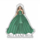 Female Capricorn goddess fashion illustration artwork sticker. The illustration features a woman in a beautiful green emerald ball gown. She has silver goat horns and a silver tiara. This earth sign female illustration sticker is ideal for females born during the Capricorn season. Customise this sticker by adding a name.