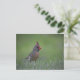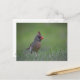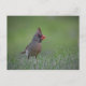 This postcard features a female cardinal in glittering grass looking for her mate.