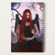This design features a red and black themed female demon with black wings on a full moon and dark branches background.