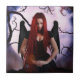 This design features a red and black themed female demon with black wings on a full moon and dark branches background.