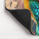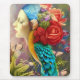 Female face with floral n peacock feathers mouse mat