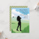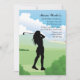 Invite friends to tee off with this beautiful, golf-themed invitation. It's perfect for a female, golf-enthusiast's birthday celebration. It features a long-haired, female, silhouette on the green with a golf club in her hands under a blue sky with billowy, white clouds. The card is easy to customise with your wording, font, font colour and choice of six paper types.