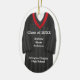 Personalised double-sided graduation ornament decorated in black and red gown colours for that special female senior. Edit custom text on front and back in the easy Zazzle text editor.