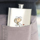 The product is a good size and came exactly as it was pictured. The lid is not attached to the flask, which could be dangerous on drunken nights... The print came out surprisingly well and looks very sharp. Would definitely recommend.