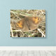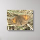 This awesome canvas print features a photograph of a British butterfly species called the Meadow Brown (Maniola jurtina). The butterfly is sitting on the ground. It has its wings partially open revealing the eyespots and the pretty brown and orange markings that indicate that this individual is a female.