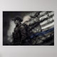 Honor the strength, courage, and dedication of women in law enforcement with this powerful Thin Blue Line wall art poster. Featuring a female police officer in tactical gear set against an American flag with the iconic blue line materializing and emanating from behind her in smokey, ink-like, cinematic artist effects. This bold black and white design is a striking tribute to duty, resilience, and service.