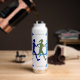Beautiful female runner silhouettes adorn this water bottle. Accented with running shoes in shades of blue. Perfect water bottle for after your running workout, to take to work or to celebrate the runner in your life.