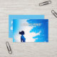 female black silhouette with a tree in bloom and soft blue/white background business card
