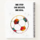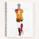 Artistic watercolor-style illustration of a female soccer player standing with a ball, painted in vivid splashes of orange, red, and blue on a dark background. This energetic sports design adds a motivational touch to note-taking, journaling, or planning — perfect for soccer fans and athletes.