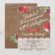 Female Surprise 65th Birthday Party Invitation Cards with red florals and Christmas greenery