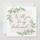 This square card in blush and greenery is hand painted. Such a lovely way to ask your friend or sister to be your bridesmaid. There is writing on the back for a note.