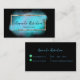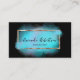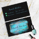 Modern and feminine personalised business card design featuring a faux gold foil rectangle frame with turquoise watercolor paint brush strokes on a black background. The text is fully customisable. To change it use the Personalise option. For more changes, such as changes to the font, font colour or text layout, use the Edit design tool option.