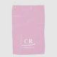 Feminine pink towel featuring a clean white monogram with two initials and a name separated by a sleek divider line. The minimalist layout and crisp typography create a fresh, modern look that works beautifully for golf, sports, travel, or everyday use. Personalise using the simple template to add your own initials and name. Designed for gifting or daily routines, this personalised towel brings a refined, feminine touch to her accessories. All colours and text can be edited in the design tool.